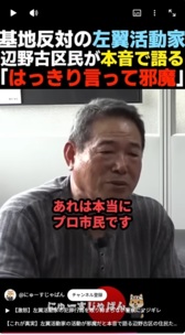 「基地反対派の人たちが来たから(辺野古区が)おかしくなったのを元に戻したい」