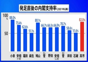 高市内閣の支持率82.0% 政権発足直後の支持率としては