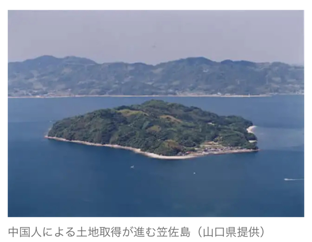 笠佐島は9月末現在、広さ94万平方メートルに6世帯8人が暮らすが、登記簿などによると計3651平方メートルが中国人によって購入されている。瀬戸内海は多くの船舶が行き交う交通の要衝で自衛隊や在日米軍の基地もあり、安全保障上の観点から、中国人による土地取得を懸念視する向きが多い。