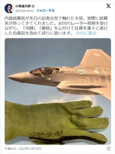 小泉氏「訓練の事前通報ない」中国軍機のレーダー照射