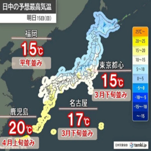 https://tenki.jp/forecaster/domoto_yukiyo/2026/... 明日15日も、東日本から西日本は、春を実感する